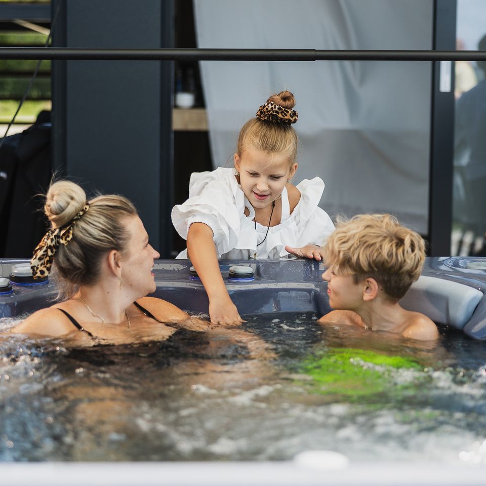 Nasze apartamenty to wyjątkowe przestrzenie, w których czeka na Ciebie komfortowy salon z pięknym widokiem na staw oraz prywatne jacuzzi. Dodatkowo, dla Twojego spokoju i bezpieczeństwa, apartamenty wyposażone są w sejf.